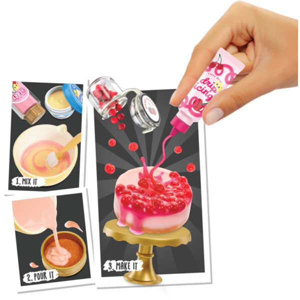 Hver pakke er en OVERRASKELSE, så du vet aldri hvilken mini du har fått før du pakker den opp! Følg "oppskrift"-kortet for å forberede din mini. Bak fra bunnen av ved å blande ingrediensene og la dem lufttørke i henhold til instruksjonene.