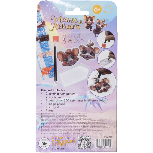 Med dette kreative settet kan barna lage sin egen nøkkelring ved å feste små diamanter på platen. Følg tallene, plukk opp riktig farge med pennen og fest diamantene på riktig sted. Bit for bit vokser et magisk Musse & Helium-motiv frem!