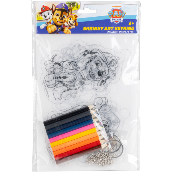 Fargelegg, klipp og se figurene krympe i ovnen - de blir harde og slitesterke, perfekte som nøkkelringer eller dekorasjon til barnevesken. Settet inneholder fire ark krympeplast, åtte motiver, ti penner, to nøkkelringer og åtte kjeder. Alt som trengs for en kreativ og morsom aktivitet for alle små PAW Patrol-elskere!