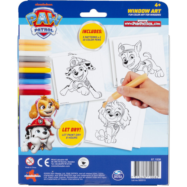 Med dette morsomme hobbysettet kan barna male tre forskjellige PAW Patrol-motiver på plastdekaler, som deretter lett festes på vinduer eller glassflater. Dekalene kan enkelt flyttes og etterlater ingen merker eller limrester på vinduet. Settet inneholder ti forskjellige malingsfarger, slik at barna kan velge sine favorittfarger og gjøre hvert bilde unikt.