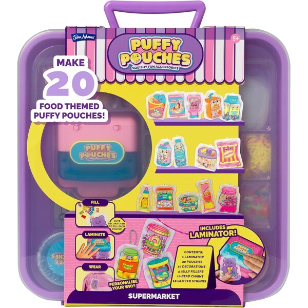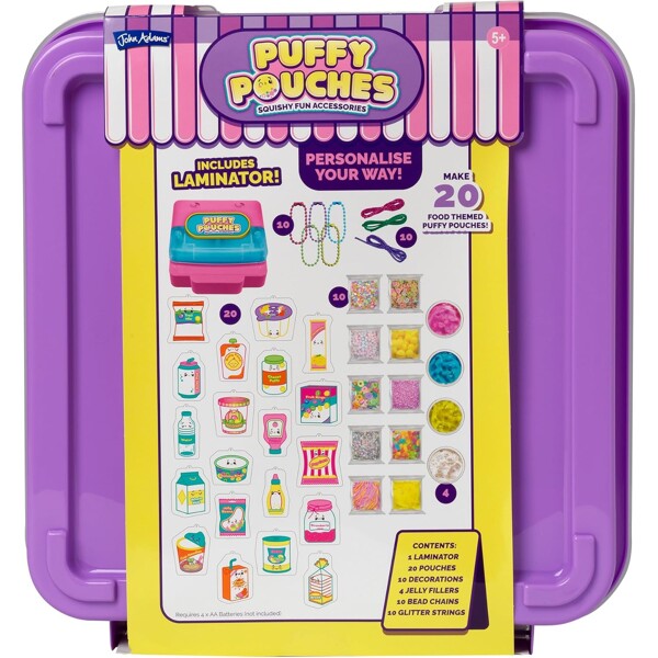 Bruk gelefyllet, de søte dekorasjonene og kulekjedene for å lage 20 unike puffy pouches personlige. Lukk posene med laminatoren, heng dem på vesken din - eller bytt dem med vennene dine!Inneholder:- 1 laminator- 20 små poser- 10 poser dekorasjon- 4 gelefyllinger- 10 kulekjeder- 10 glitterbånd- 1 bæreveske