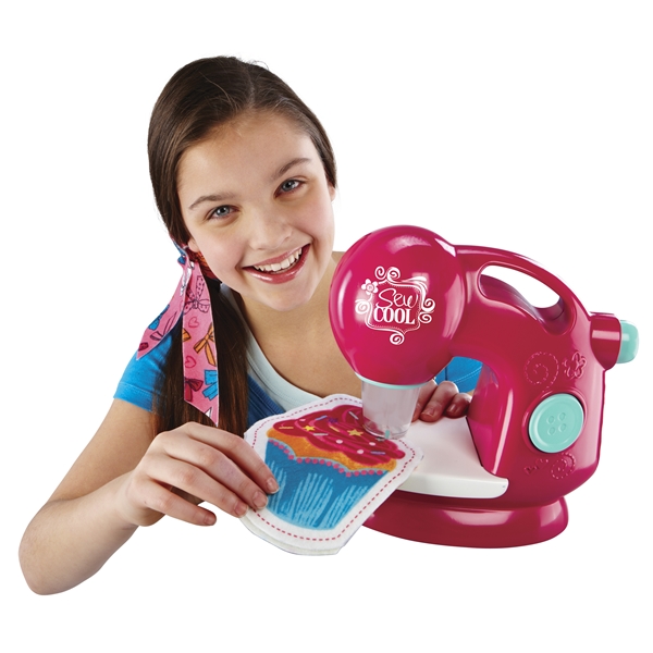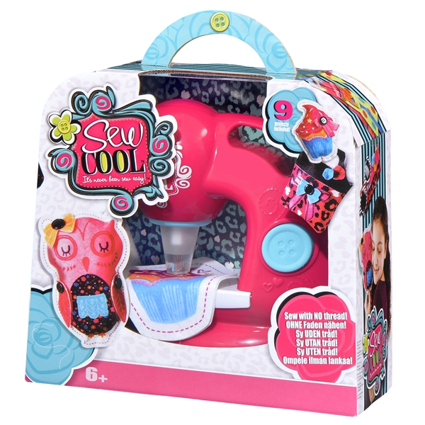 Sew Cool Symaskin er en symaskin som gjør det ekstra morsomt å sy. Det som er morsomt med denne fine rosa symaskinen er at det ikke trengs noen tråd! I settet inngår: 9 forberedte syprosjekt 8 tøybiter 3 mønstre 1 bånd 14 tøydekorasjoner 8 trykk-knapper 1 pose med stopping
