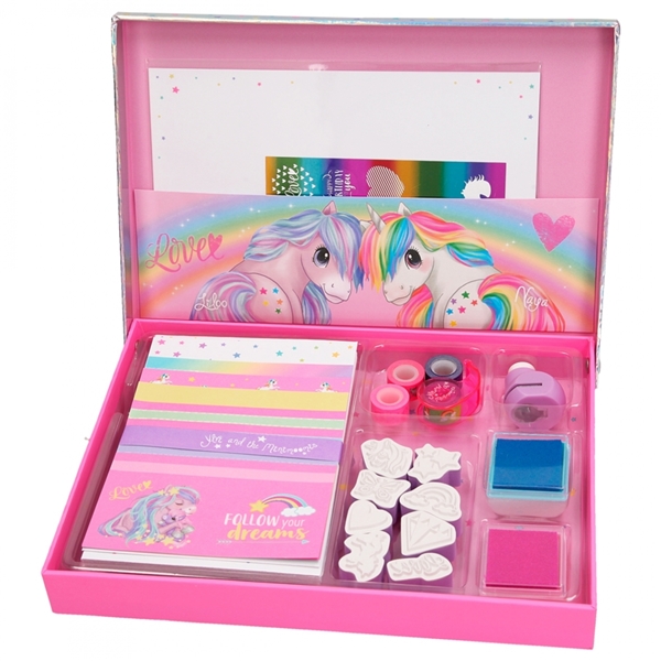 Dette fine settet med skrivesaker fra Ylvi & amp; Minimoomis gjør det så mye morsommere å skrive brev til venner, besteforeldre eller søskenbarn som bor lenger borte! Den inkluderer frimerker med frimerkeblokker, mange brevpynt og papirvarer med passende konvolutter. Også perfekt å gi i gave!