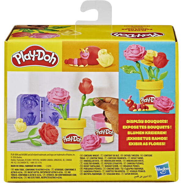 Blivende blomsterhandlere kan enkelt forestille seg, skape og vise frem sine helt egne blomsterbuketter med dette Play-Doh-settet. Fyll bare bokformen med Play-Doh-farger og en stilk, trykk sammen formen og åpne den for å avsløre en vakker hageleke.