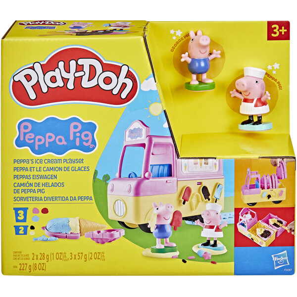 Peppa Gris Lekesett Iskrem fra Play-Doh tilbyr masse kreativt skapende for barn. Settet forestiller Peppa Gris og hennes bror Georg og inneholder en lekebil med former for å lage fantasifulle godbiter. Lastebilens bakhjul kan rulle ut sirupsformer, og figurene kan sitte foran, noe som bidrar til historiefortellingen.