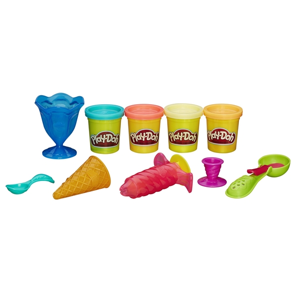 Play-Doh Sundae Sett er et supermorsomt iskremsett fra PLAY-DOH.Skap den perfekte desserten i PLAY-DOH-leire. Hva sier du til en stor skål med leireis? Eller en kroneis av leire? Utforske og trene på modellbyggingen din med dette fine settet som inneholder iskjeks, stativ, skål, isskje, sprits, skje og 4 bokser PLAY-DOH-leire.