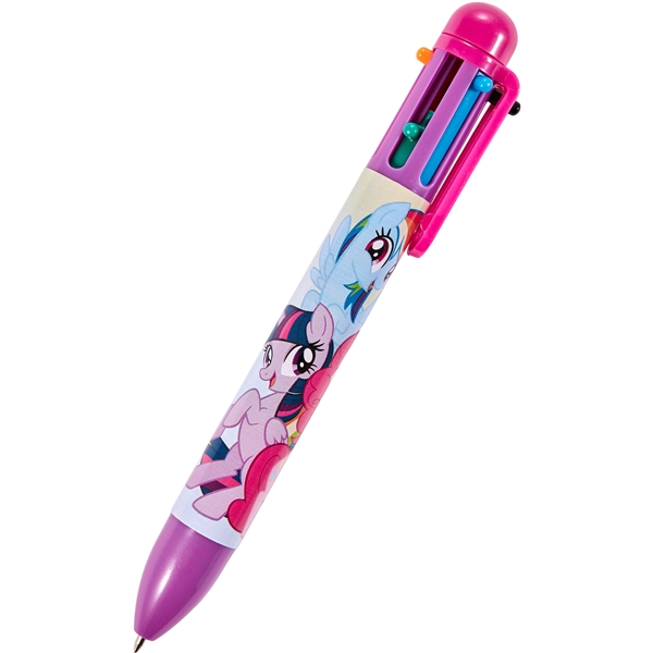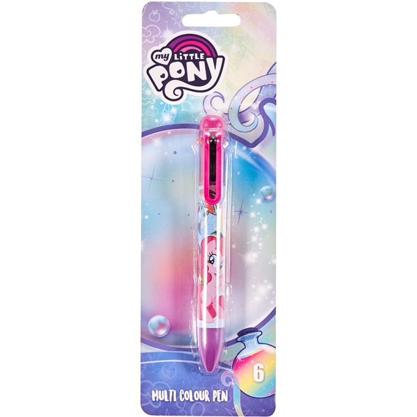 En flerfarget blyant med motiver fra My Little Pony. Pennen har 6 forskjellige farger å fargelegge eller skrive med. Perfekt for alle hesteelskere.