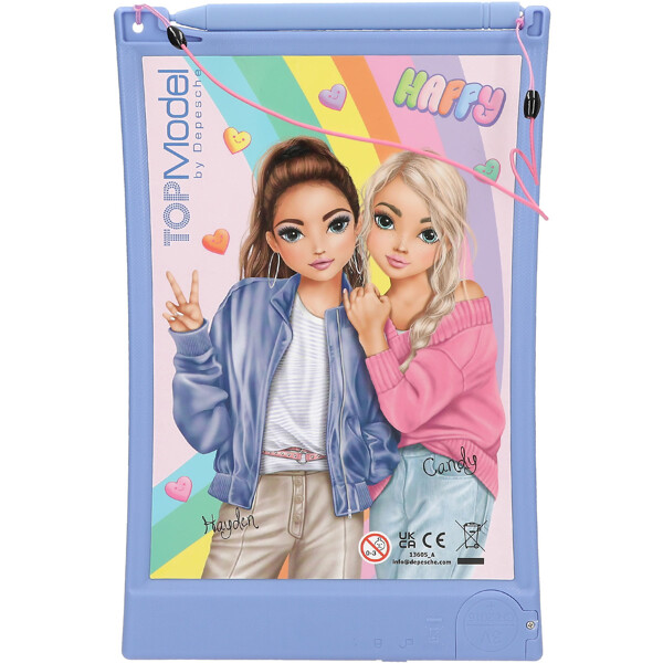 Tavlen med et lyseblått etui har et stilig TOPModel-motiv på baksiden, og selve displayet måler 8,5 tommer.
