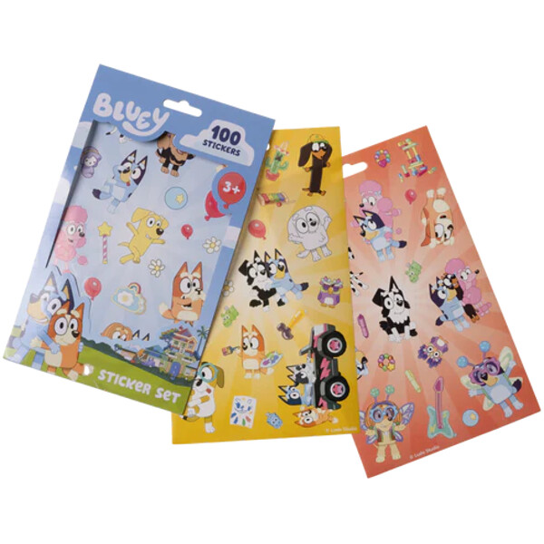 Bluey klistremerkepakke med 5 x 20 klistremerker = totalt 100 klistremerker.