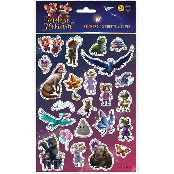 Settet inneholder 71 magiske papirklistremerker for alle små Musse & Helium-fantaster. Med tre ark fulle av Musse & Helium og deres venner, kan barna pusle og dekorere alt fra tegninger til festinvitasjoner. Klistremerkene er enkle å bruke, perfekt for både lekestunder og gaveideer!