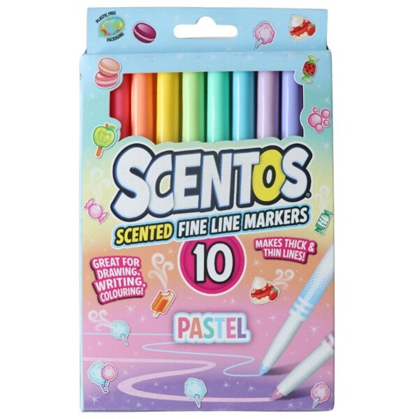 Duftende, fine tusjpenner i pastellfarger som kombinerer morsomme fargeleggingsaktiviteter og herlige dufter. Perfekte produkter for kreative og morsomme familieaktiviteter.