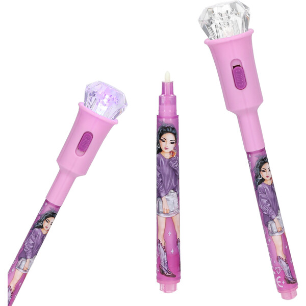 TOPModel-pennen for hemmelige meldinger skriver med usynlig blekk som først blir synlig når det belyses med diamantens UV-lys.