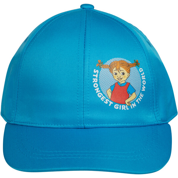 En klassisk Pippi caps for barn. Med forbøyd skjerm, solid front og et justerbart borrelåsbånd bak. Laget av sertifisert resirkulert polyester.