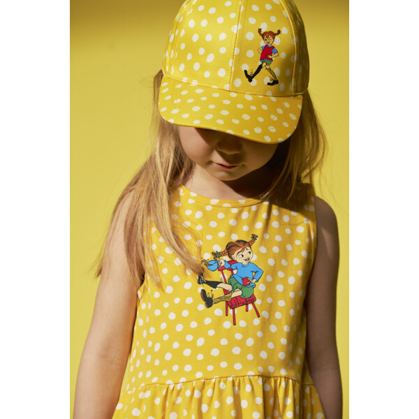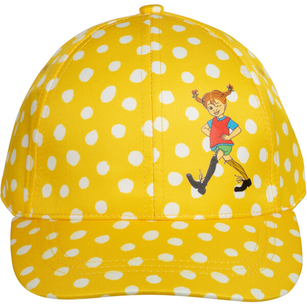 En klassisk Pippi caps for barn. Med forbøyd skjerm, solid front og et justerbart borrelåsbånd bak. Laget av sertifisert resirkulert polyester.