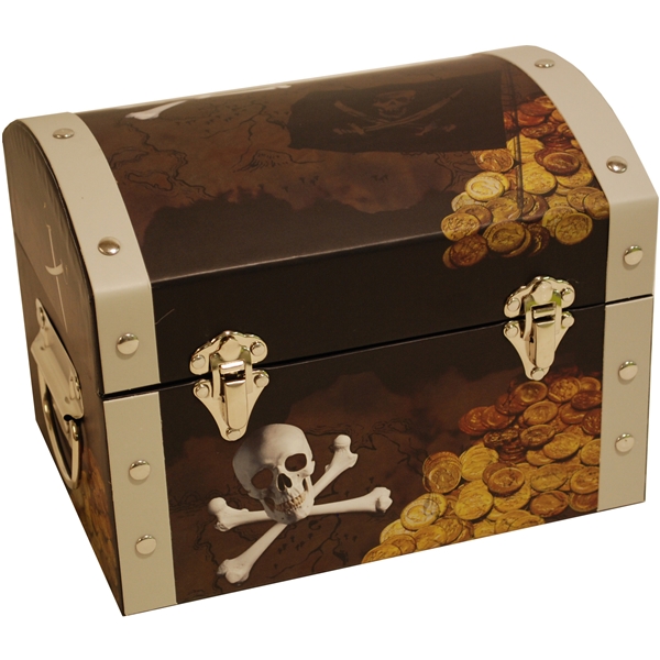 Skattekiste Sjørøver er et must for enhver pirat. Samle skattene du finner på alle de spennende eventyrene, og la ingen ta det fra deg. Den har to spenner og to håndtak som du kan bære den i.