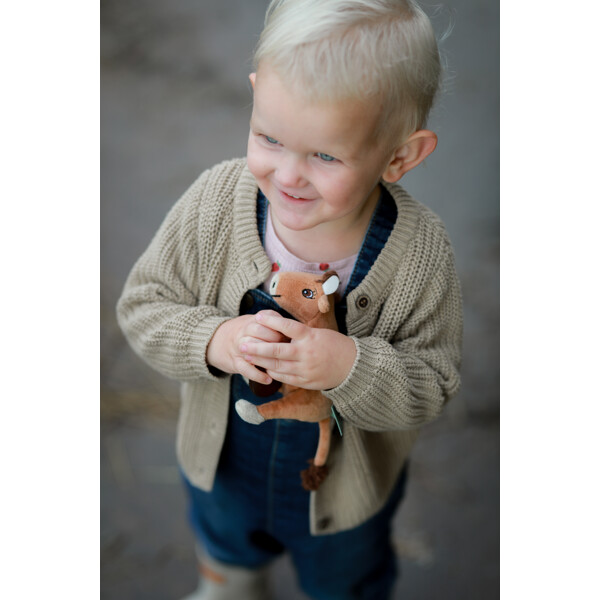 Produsert i trygge materialer, fri for skadelige stoffer og er en fin kombinasjon av koseklut og biteleke i ett. Produktet er CE-merket og oppfyller den europeiske leketøysikkerhetsstandarden EN71. Naturgummi er et naturmateriale som kan resirkuleres, noe som også gjør at materialet eldes med tiden, det kan også variere i farge.