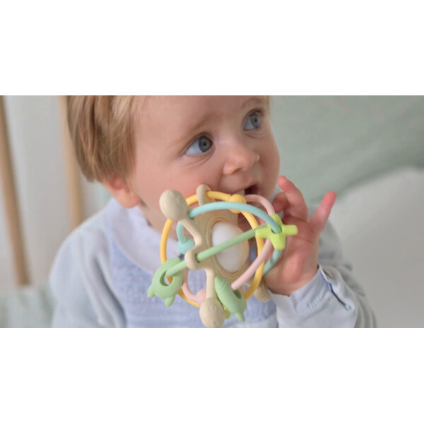 Biteleke Galaxy gir masse lekeglede til babyen din og lindrer også ubehag ved tannfrembrudd. Det søte designet med stjerner og planeter oppmuntrer babyen din til å utforske, bite og suge på de mange detaljene og strukturene. I midten er det en sol med rangle. Den gjennomtenkte formen er perfekt tilpasset små hender og fremmer utviklingen av babyens griperefleks og finmotorikk.Bitvennlig myk leke med rangleFremmer finmotorikkenUtformet for små henderBPA-fri silikonRengjør med såpe og vannStørrelse: 12 x 12 x 9 cm