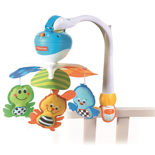 Tiny Love Take Along Musikkuro er en fargeglad uro med tre søte små dyr som spiller fem ulike melodier. Musikkuroen festes enkelt i sengekanten, i reisesengen, i barnevognen eller i babystolen.