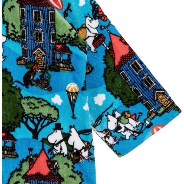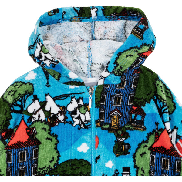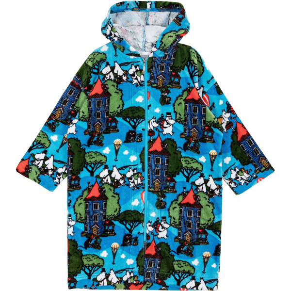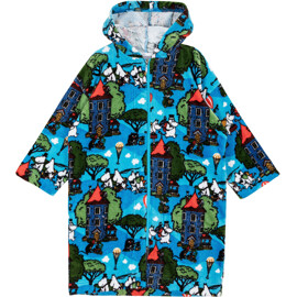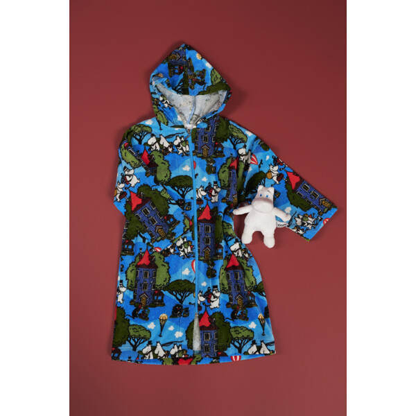 En myk og koselig Mummi badekåpe for barn. Badekåpen har hette, opphengshempe i nakken og glidelås foran. Materialet er myk bomullsvelur med innside av frotté med høy absorberingsevne.