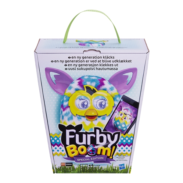 en ny FURBY-generasjon er på vei til å klekkes - og det finnes knapt noe bedre måte å feire påsken enn med en ny, leken kompis! FURBY Boom har mengder av nye ferdigheter og svar, ulike personligheter og mønstrete pels. Som alltid har FURBY-kosedyret ditt en egen personlighet og måten du behandler den er med på å forme den. FURBY Boom huskernavnet du gir den, kommuniserer med andre FURBY Boom-venner den treffer, klekker og oppfostrer virtuelle Furblings og mye mer med FURBY Boom-appen! Til syvende og sist handler alt om hvordan du behandler Furbyen din. I begynnelsen prater den mest sitt eget språk FURBISH, men desto bedre du behandler Furby og prater med den, jo bedre engelsk kan den prate. Furby kan ikke bare prate, den kan også bevege på seg, danse og se med de digitale øynene sine. Mat, prat, kil, spill musikk for den, snu den opp-ned. Men husk å behandle Furbyen din bra slik at den liker deg og begynner å svare på engelsk! Siden den har sin egen personlighet formes Furby av handlingene dine. Furby prater ikke bare med deg, men også med andre Furbyer!Furby Boom Easter Special Edition er ca 14,5 cm.
