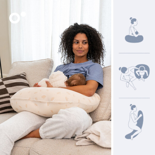 Multifunksjonell, gir støtte ved graviditet, amming og som sitte- og liggestøtte til baby