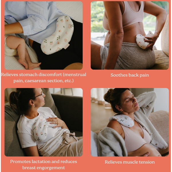 Doomoo Lindrende Kjøle- & Varmekudde med Raps er en bueformet pute spesielt designet for å gi lindring ved smerte og ubehag – fra graviditet til amming og restitusjon. Formen er nøye tilpasset for å passe kvinnens kropp og plasseres enkelt over områder som livmor, korsrygg, nakke eller ømme bryster.Putten inneholder en avtagbar varmepute fylt med naturlige rapsfrø, som gir en jevn og behagelig fordeling av varme eller kulde – helt uten kjemikalier.Fordeler og bruksområder:Ved graviditet: lindrer muskelspenninger og smerte i korsrygg eller bekkenVed amming:Varme: stimulerer melkeproduksjon og lindrer melkestoppKulde: lindrer ømme eller hovne bryster, blåmerker og betennelseFleksibel bruk: kan plasseres over livmor, bryst, nakke eller ryggNaturlig fylling: inneholder rapsfrø som holder varme og kulde effektivtErgonomisk bueform: tilpasset kvinnens kroppSlik bruker du produktet:For kald bruk: plasser innerputen i en forseglet plastpose i fryseren i minst 2 timerFor varm bruk: varm puten forsiktig i henhold til medfølgende instruksjoner (f.eks. i mikrobølgeovn)