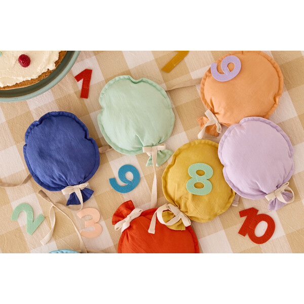 Den er laget i bomull med myk polyesterfiberfylling og er ment å være en del av dine feiringer i mange år fremover. En av ballongene har en plass hvor du kan feste tallet for året som feires – tallene festes med borrelås, noe som gjør det enkelt å oppdatere hvert år.