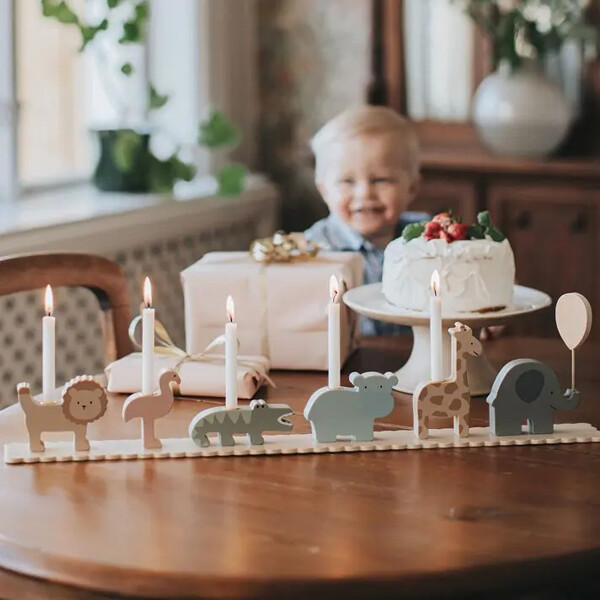 Med sine lekne detaljer og myke farger blir dette toget en magisk detalj på bursdagsbordet. La løven, giraffen og krokodillen bli med på feiringen mens lysene skaper en koselig og festlig stemning.