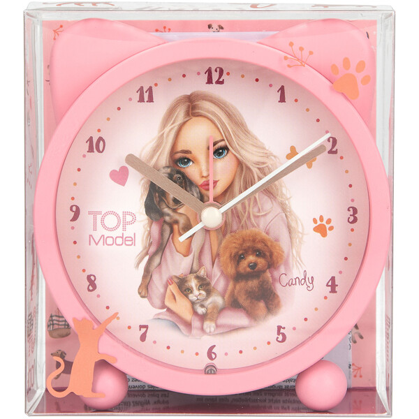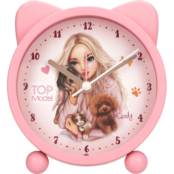 Fin vekkerklokke fra TOPModel-serien FUR EVER FRIENDS i vakker rosa med søte ører og motiv av TOPModellen Candy med to hunder og en katt i armene. Vekkerklokken er stille bortsett fra når den ringer selvfølgelig, og har i tillegg en praktisk lysfunksjon.