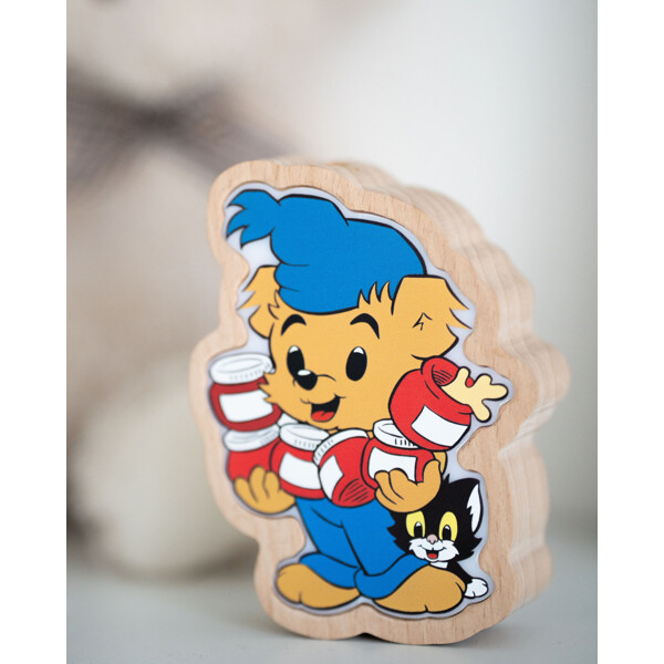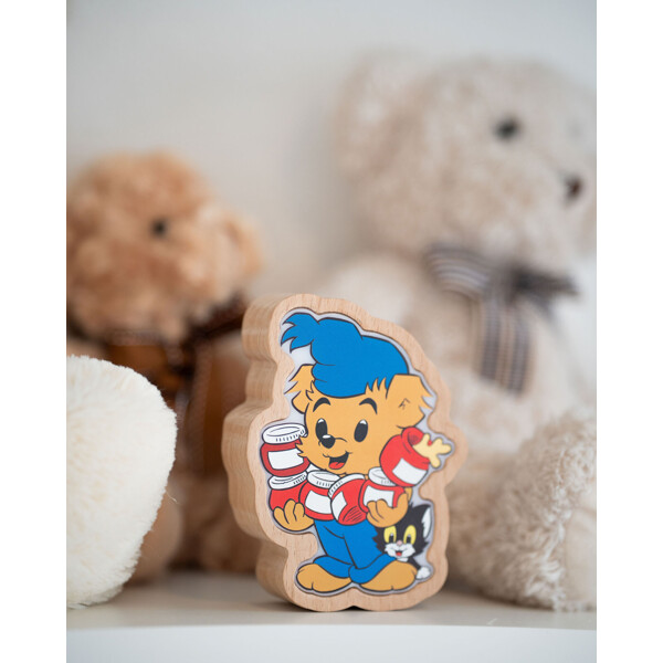 En trygg nattlampe med Bamse som lyser med varmt lys. Oppladbar og fin som interiør – en snill venn som våker i mørket.