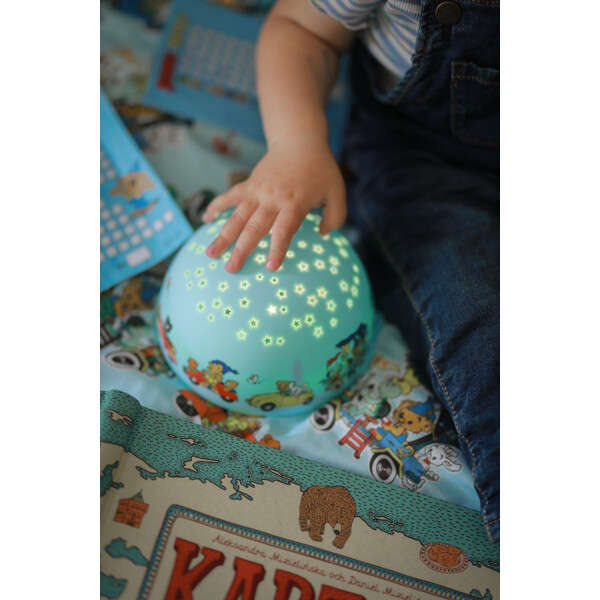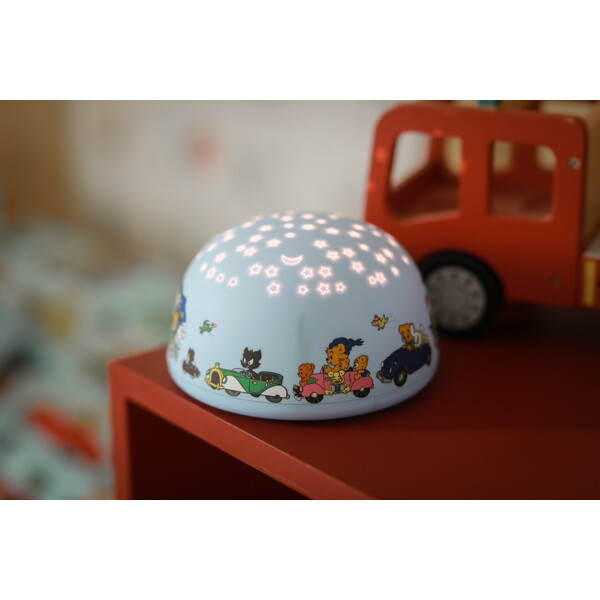 Bamse nattlampe med stjerneprojektor gir en fin stjernehimmel av varmt hvite, grønne eller blå stjerner i barnets rom om kvelden og natten. Du kan også velge om den samtidig skal spille en melodi mens barnet ditt skal sovne (Nu i ro slumra in i to forskjellige arrangementer, Lillan ska sova og Blinka lilla stjärna där). Den er lett å slå på eller av med et knappetrykk og har en timer på 30 minutter.