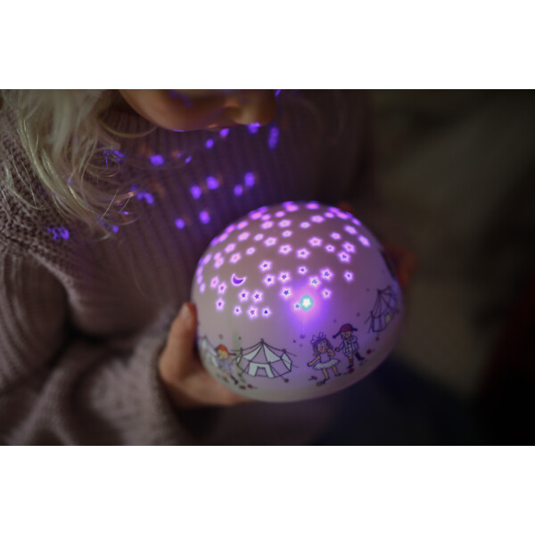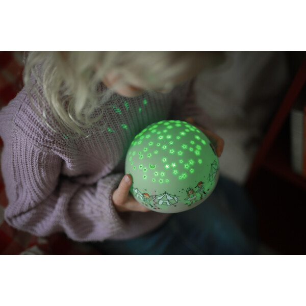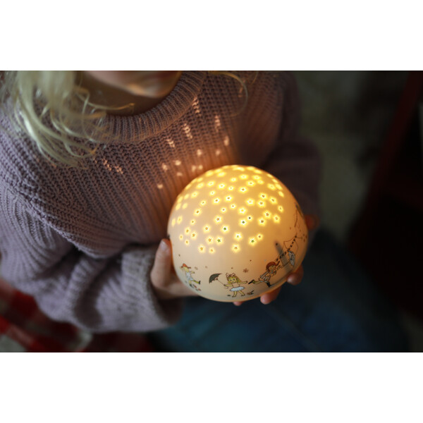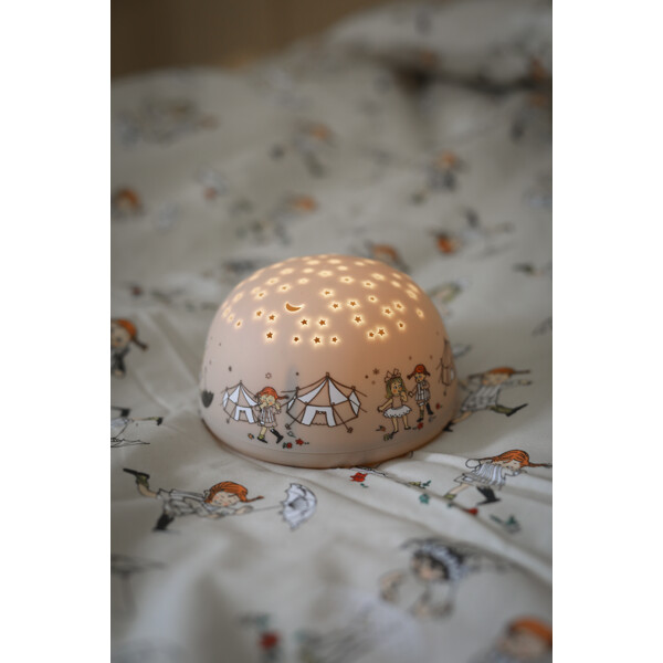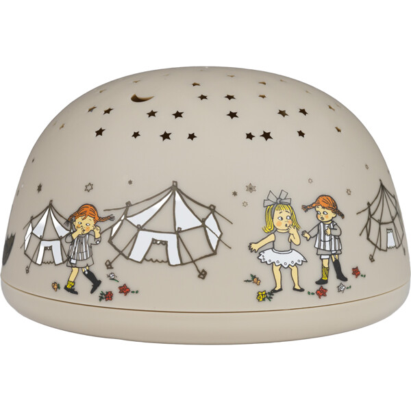 Pippi Langstrømpe nattlampe med stjerneprojektor gir en fin stjernehimmel av varmt hvite, grønne eller blå stjerner i barnets rom om kvelden og natten.
