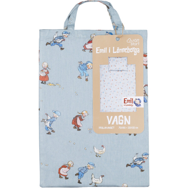 Dynetrekk og putetrekk med motiv fra Emil i Lønneberga. Laget i bomull.