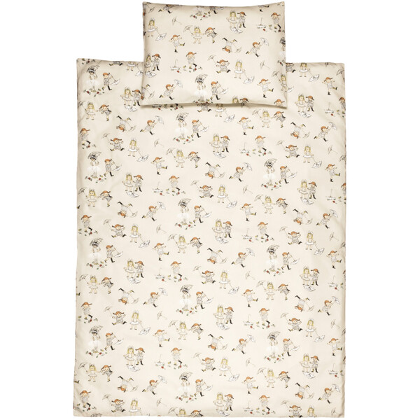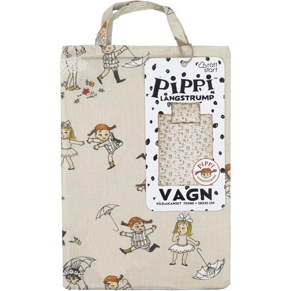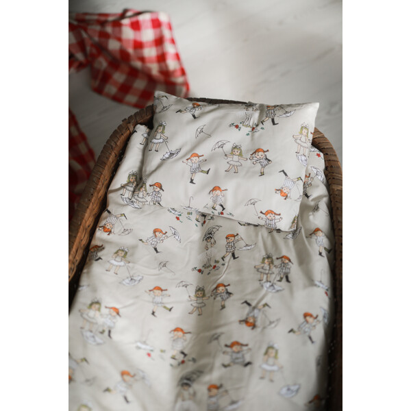 Dynetrekk og putetrekk med motiv fra Pippi Langstrømpe. Laget i bomull.