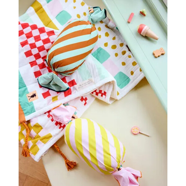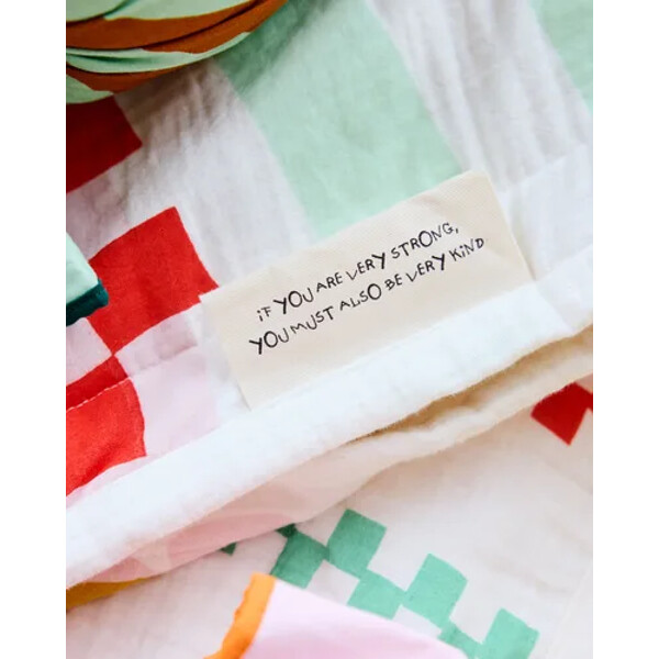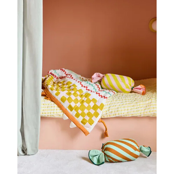 "Den som er veldig sterk må også være veldig snill." Disse ordene reflekterer Pippi Langstrømpes blanding av styrke og omtanke – sterk nok til å løfte en hest, men alltid vennlig. Med dette teppet ønsker vi at den samme følelsen skal være til stede. Det er mykt og trygt, men med små detaljer som inviterer til fantasi og lek – omtrent som Pippi selv.