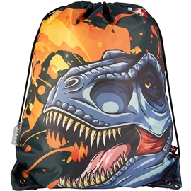En kul treningsveske i resirkulert materiale med Dino T-Rex-motiv, perfekt for oppbevaring av sportsklær.