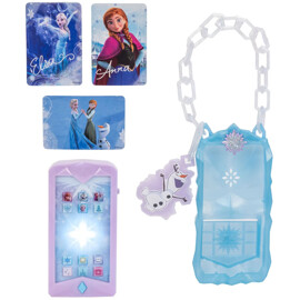 Barn kan trykke på knappene for å høre magiske lydeffekter, sanger og fraser fra Elsa – mens telefonen lyser opp med glitrende snøfnugg.