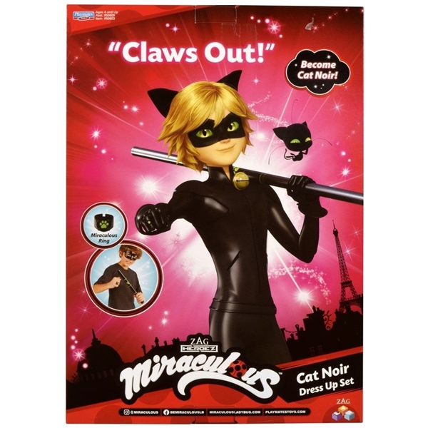 Gjenskap favorittscenene dine fra Miraculous med Miraculous Role Play Set Cat Noir. Dette rollespillsettet inneholder alt et barn trenger for å forvandle seg til Cat Noir fra hitserien Miraculous. Settet inneholder: Cat Noirs hemmelige superheltmaske, signaturringen, en pinne (33 cm) for superheltvesker så vel som for å late som lek. Cat Noirs sidekick Kwami er også inkludert i settet.