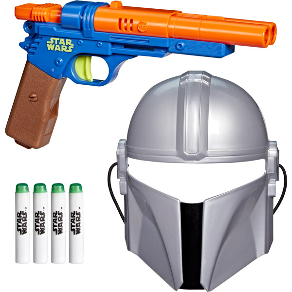 Dette STAR WARS-settet inneholder en Mandalorian-maske og en blaster, noe som betyr at barn kan starte sine Mandalorian-eventyr med en gang.