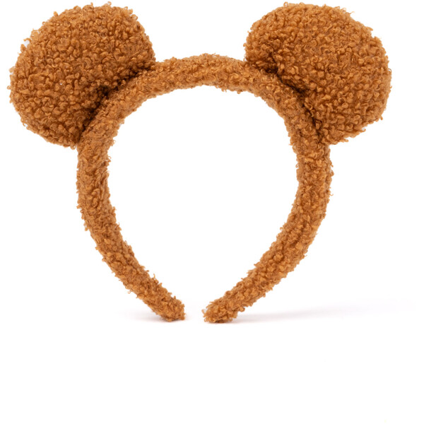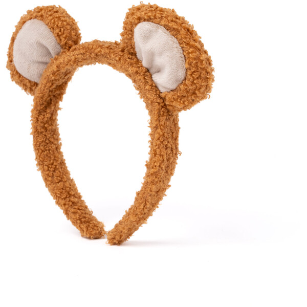 Mykt diadem med bamseører i brunt plysjstoff.