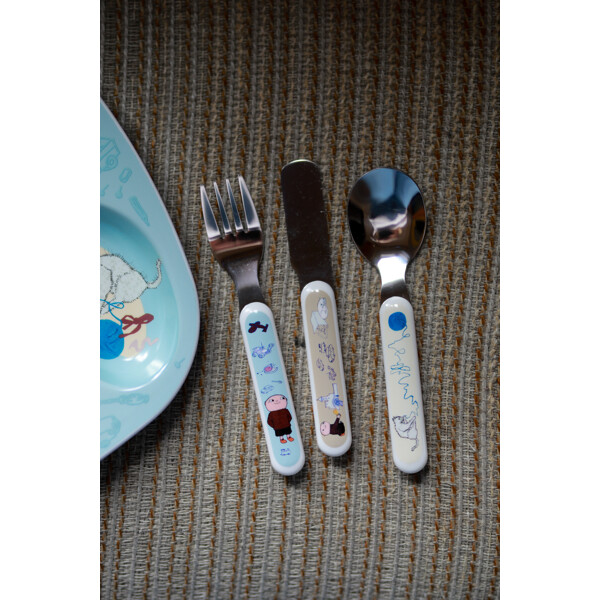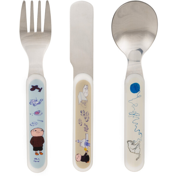 Slitesterkt barnebestikk i ABS-plast og rustfritt stål. Kniv, gaffel og skje som passer små hender og munner. Leveres i en fin og praktisk gaveeske.