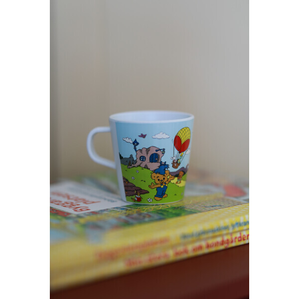 Kopp med ett håndtak med Bamse-motiv, laget i RPET som er et miljøvennlig og holdbart materiale.