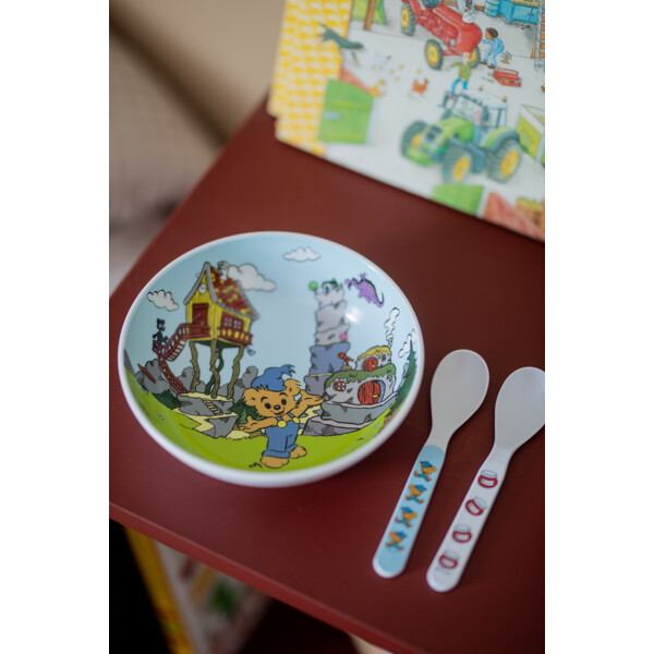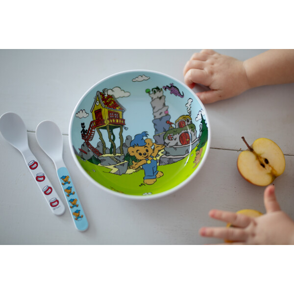 Dyp skål med Bamse-motiv, laget i RPET som er et miljøvennlig materiale.