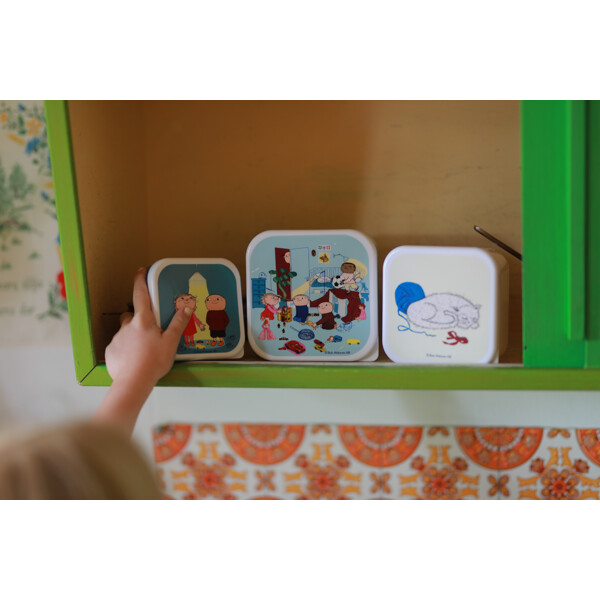 Praktiske snackbokser i tre forskjellige størrelser som raskt blir en favoritt hjemme hos både store og små!Boksene passer godt for både matpakke og piknik, men også som oppbevaring til ting av ulike slag.Produktet er laget i slitesterk polypropylen som er trygg å bruke og fri for giftstoffer.Boksene kan brukes i mikrobølgeovn (30 sek 800W) og kan vaskes i oppvaskmaskin på 50 grader, de tåler også frysing. Målene på boksene er som følger: Liten: 3 dl, Middels: 5 dl, Stor: 7,5 dl.