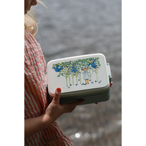 Praktisk matboks med motiv fra Elsa Beskows herlige eventyr som raskt blir en favoritt hjemme hos både store og små! Boksen har en mellomskuff med to rom samt et godt lokk med klips, man kan dessuten velge om man vil ha med skilleveggen eller ikke, lokket kan strammes i to forskjellige posisjoner.