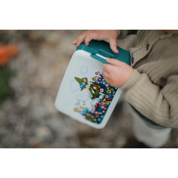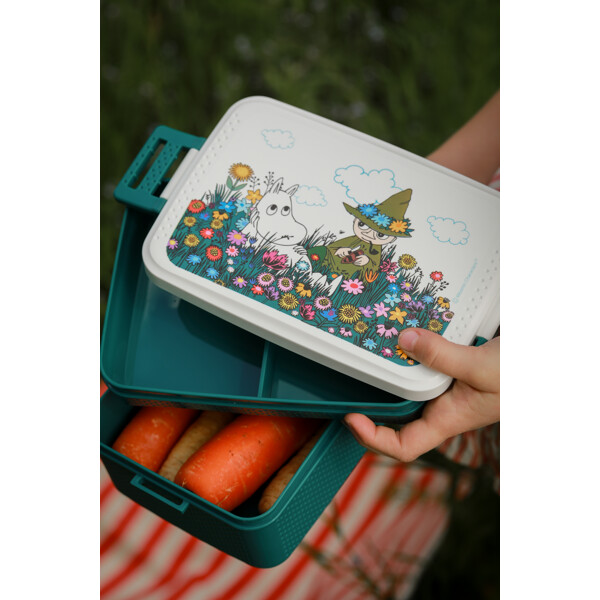 Forfatterinnen og kunstneren Tove Jansson elsket havet og naturen. Nesten alle hennes fortellinger og illustrasjoner utspiller seg i naturen. Matboksenes motiv skildrer Mummifamiliens eventyr. Produktet er laget i en meget fin fabrikk som er sertifisert av BSCI for gode og trygge arbeidsforhold. Fabrikken er sertifisert i henhold til kvalitetsstyringssystemet ISO 9001 for å sikre god håndtering av produkter som skal brukes med mat.