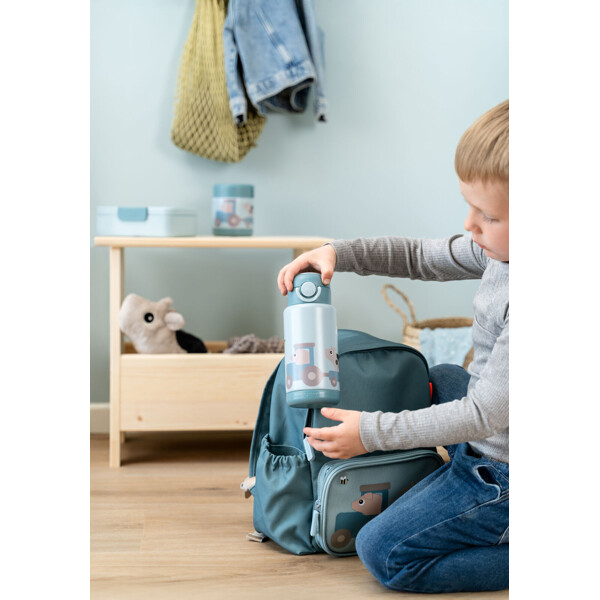 Gjennomtenkte detaljer gjør det enkelt for små å håndtere den på egen hånd: et trykknappslokk designet for små fingre, en sikker silikonforsegling for å forhindre søl i ryggsekker og et praktisk bærehåndtak for livet på farten. Flasken holder drikker akkurat slik den lille vil ha dem – varme eller kalde – i opptil seks timer når du er ute og beveger deg. Med plass til 340 ml er den perfekt størrelse for å holde seg oppfrisket, fra morgenmat til ettermiddagslek.