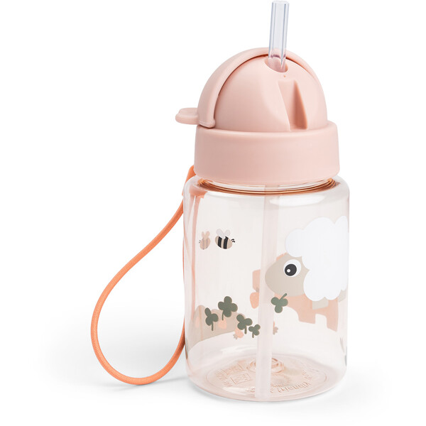 Denne flasken er en praktisk og søt måte å holde barnet ditt hydrert gjennom hele dagen. Forhøyningene på lokket gjør det enkelt for barn å få tilgang til sugerøret, noe som oppmuntrer til selvstendighet og enkel bruk. Perfekt for barnehage, skole og utendørseventyr, den er designet for å være både funksjonell og leken.