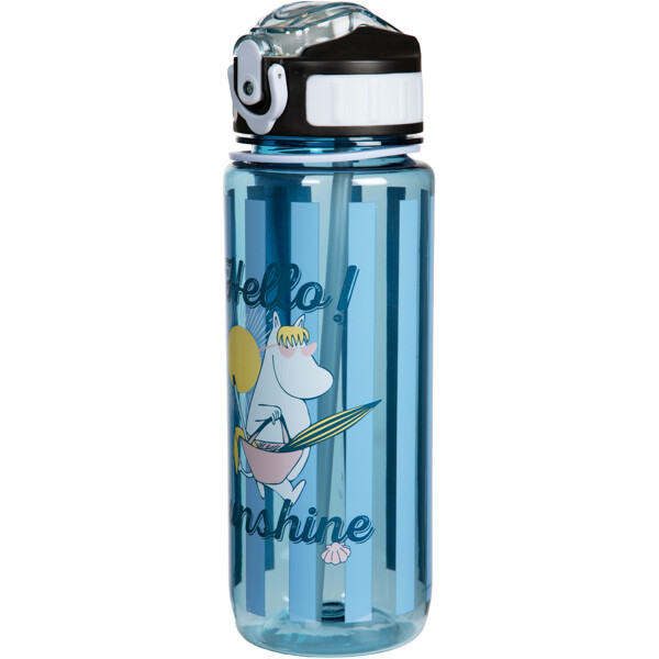 Flasken har bærerem, tett lokk og et smidig sugerør som felles inn under et lite lokk, med en behagelig myk drikkedel. Den er komfortabel å drikke av, lett å rengjøre og enkel å ta med seg. På flasken er det et bilde av Snorkfrøken og en Hello Sunshine-tekst.