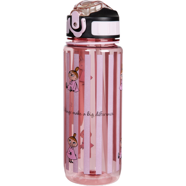Flasken har bærerem, tett lokk og et smidig sugerør som felles inn under et lite lokk, med en behagelig myk drikkedel. Den er komfortabel å drikke av, lett å rengjøre og enkel å ta med seg. På flasken er det et bilde av Lille My og et morsomt sitat: 'Sometimes, little things make a big difference'.